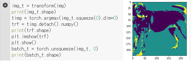 이미지를 resizing , croping 및 normalizing 에 의해 torch 텐서로 변형(transform)하고 shape 값을 출력해보면 [3, 224,224] 임을 알 수 있다. 여기에 unsqueeze 명을 통해 shape 값을 변경하도록 한다.