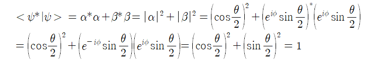 특히 중첩된 상태가 붕괴되어 |0> 또는 |1> 로 결정이 될 경우 각각 α=1 또는 β=1 이 된다.