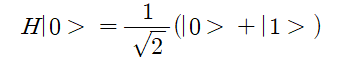 ∙중첩 시키기 (H 게이트): 첫 번째 큐비트에 '아다마르(Hadamard) 게이트'를 적용해 0 과 1이 반반 섞인 중첩상태로 만든다. 즉 양자 논리게이트 (quantum logic gate) 회로에서 적절한 주파수의 마이크로파 펄스를 사용하여 중첩 상태를 생성한다.