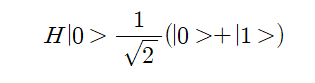 |0>에 Hadamar 게이트를 적용하면 다음과 같이 "0"(|0>) 과 "1"(|1>)이 1:1로 섞인 중첩된 양자 상태가 된다.