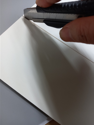 1. 포맥스 컷팅: 30cm 자를 사용 재단하여 주먹칼로 눌러 커팅한다.
