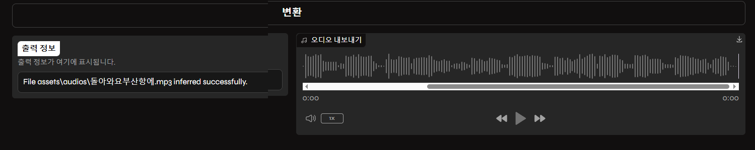 추론 단계 작업은 Colab Applio.ipynb 실행 과정에서 사용법을 설명하였는데 이 부분은 Colab 에서나 윈도우즈에서나 거의 동일하다. 단 Colab 에서는 Applio 그래픽 화면을 띄우기 위해서 GPU 접속하여 5분 정도 시간이 소요되어야 학습(Training)이나 추론(Inference) 단계로 들어갈 수 있지만 윈도우즈에서는 금방 그래픽 화면이 뜨므로 막바로 추론 작업이 가능한 이점이 있다.