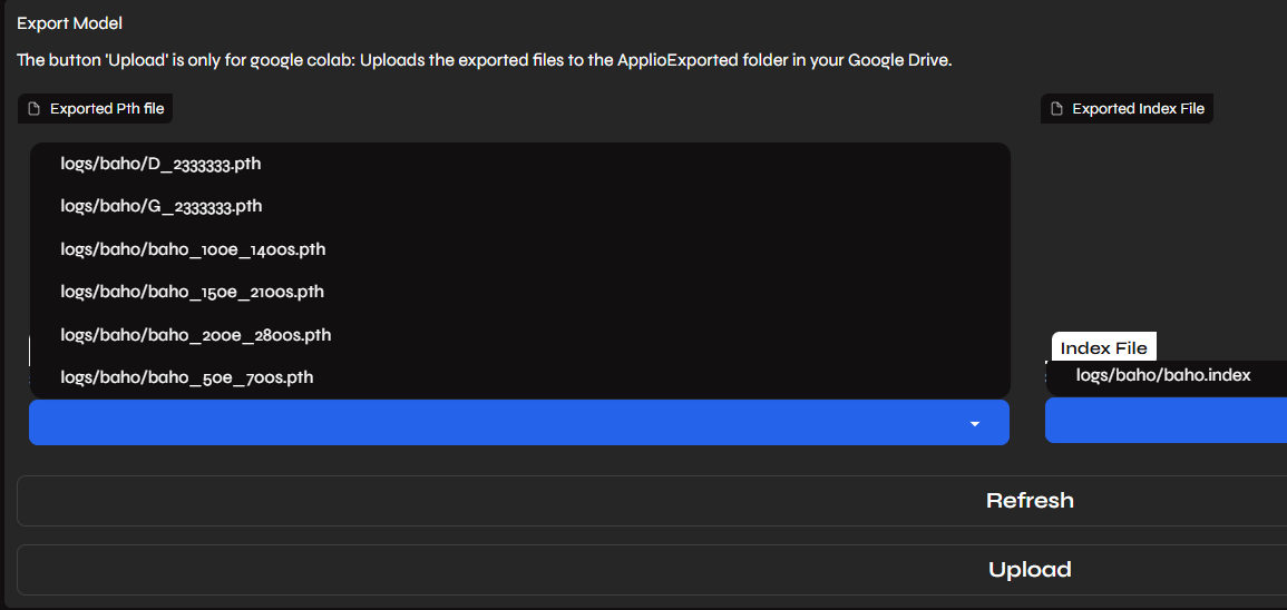 구글이 제공하는 오픈소스 Applio 를 사용해 노래목소리 wav 파일들로부터 더빙에 쓸 수 있도록 학습을 시켜보자. Applio 는 노래 목소리 더빙 뿐만 아니라 개인 목소리나 TTS 등 많은 음성 응용을 가지고 있는 대단히 유용한 코드이므로 각자 응용을 위한 사용법을 연구해 볼 필요가 있어 보인다.