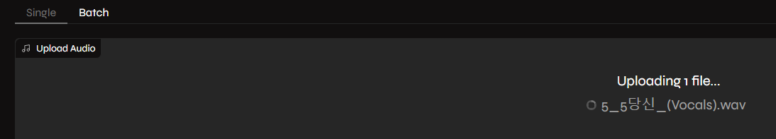 업로딩 후 아래의 결과를 관찰해 보자. 돌아가는 삼각지 wav 파일 하나가 업로딩 되었다. 몇개의 노래 목소리를 업로딩 할 것인지는 사용자 몫이다. 여기서는 1곡만 하도록 하자.