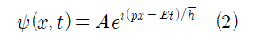 자유입자의 고전 물리학적 표현인 (1)식이 파동 특성을 가진다면 다음 식이 성립해야 한다.