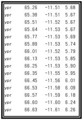 아래와 같이 빠른 속도로 스크롤되는 출력 결과를 볼 수 있다. 추력 값이 각속도로 생각되는데 아두이노 보드를 들고 정확한 교정은 어려을 듯하다. 단지 피치, 롤, 야 방향으로 움직여 특성만 파악하도록 하자. ypr 은 Yaw, Pitch, Roll을 뜻한다.