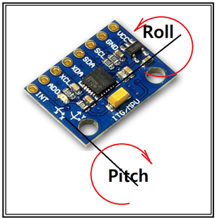 즉 3개의 각속도 자유도 롤, 피치, 야 와 함께 각 축 방향으로 선형 가속도가 있을 수 있다. 실제 아두이노 코드와 Processing 코드를 완성해서 MPU6050의 회전 축을 조사해본 결과 x축이 Pitch 축이고 y축이 Roll 축임이 확인 되었다.